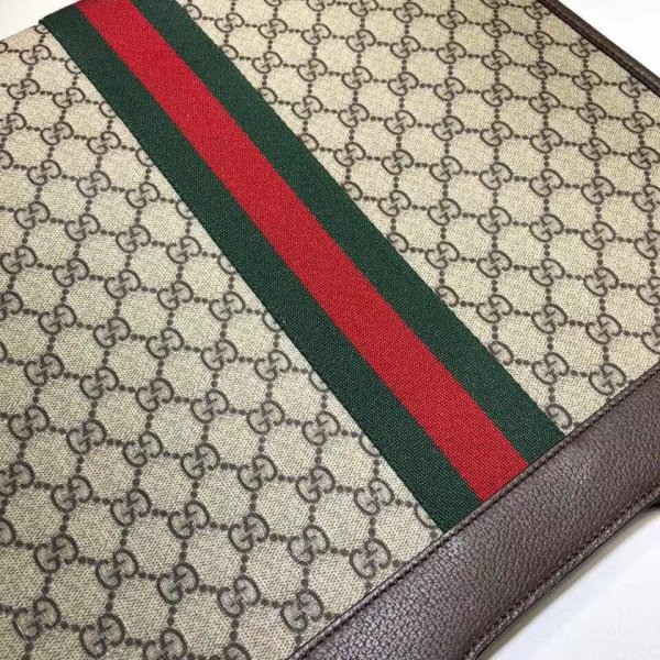 Beige/Ebony GG Supreme Canvas, un material con bajo impacto ambiental, con trimado de cuero marrón