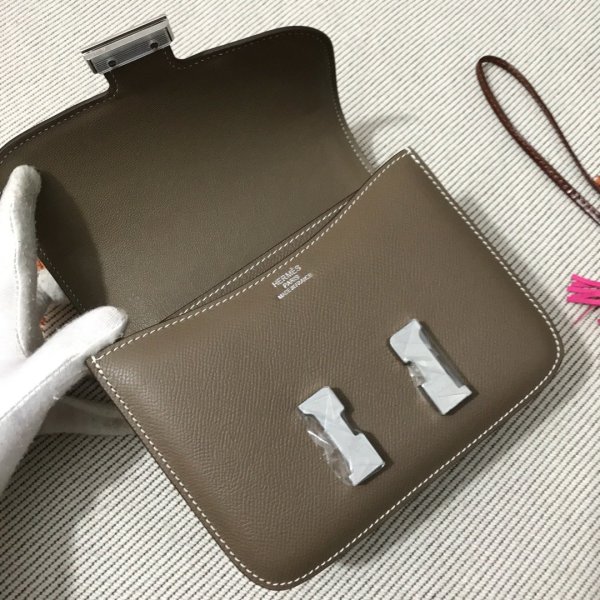 Hermes Constance Bolsa 18cm Epsom Leather Grey Dark Grey