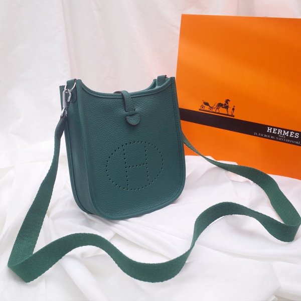 bolsas de réplica de calidad AAA+, Bolsas de réplica Hermes Venta en caliente. Hermes Mini Evelyne Leather Crossbody Bolse de color verde oscuro.