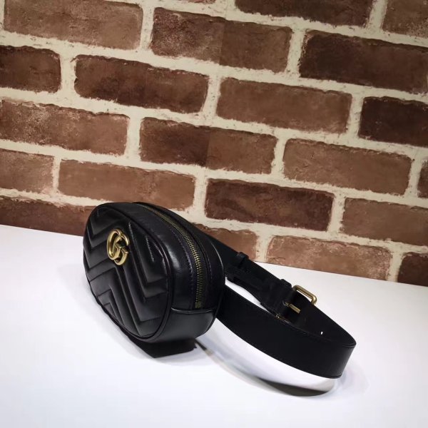 partes de la línea GG Marmont, la bolsa del cinturón fue presentada por primera vez por Alessandro Michele en la colección previa a la caída 2017. Tiene una forma redondeada inspirada en ropa deportiva con un cinturón de cuero diseñado para que la bolsa se pueda usar en lo alto de la cintura. It features the recognizable Double G detail-an archival play on the Running G.